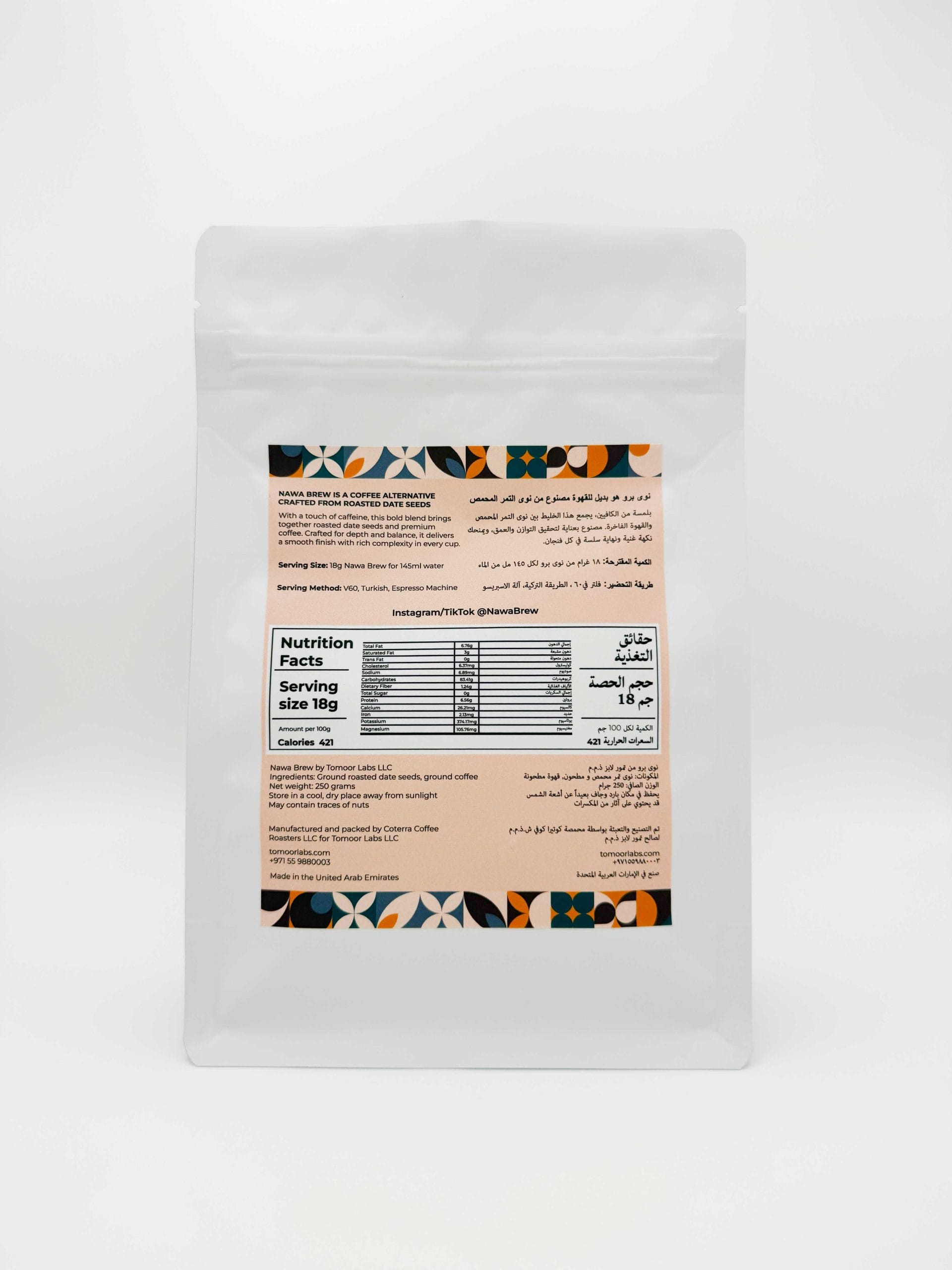 Nawa Brew Caffeine Blend combines the smooth richness of roasted date seeds with a touch of premium coffee for a balanced, low-caffeine cup. It’s bold, smooth, and satisfying — perfect for those who love coffee but want to reduce their caffeine intake.